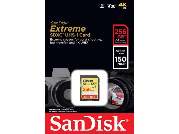 SanDisk 256GB Extreme SDXC UHS-I/U3 Class 10 V30 Memory Card, Speed Up to 150MB/s (SDSDXV5-256G-GNCIN)