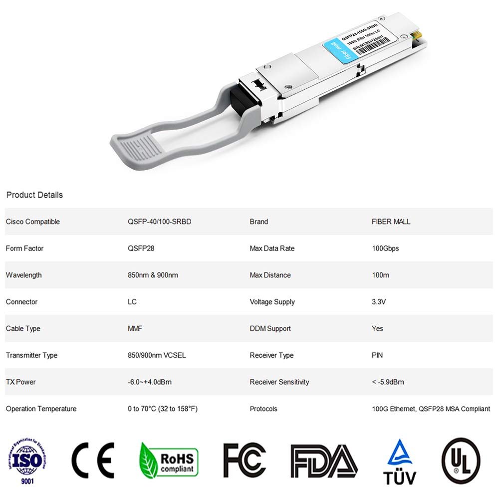 • They are compliant with IEEE 802.3bm 100GBASE-SR4 and CAUI-4. Digital diagnostic functions are available through the QSFP28 MSA-specified I2C interface.