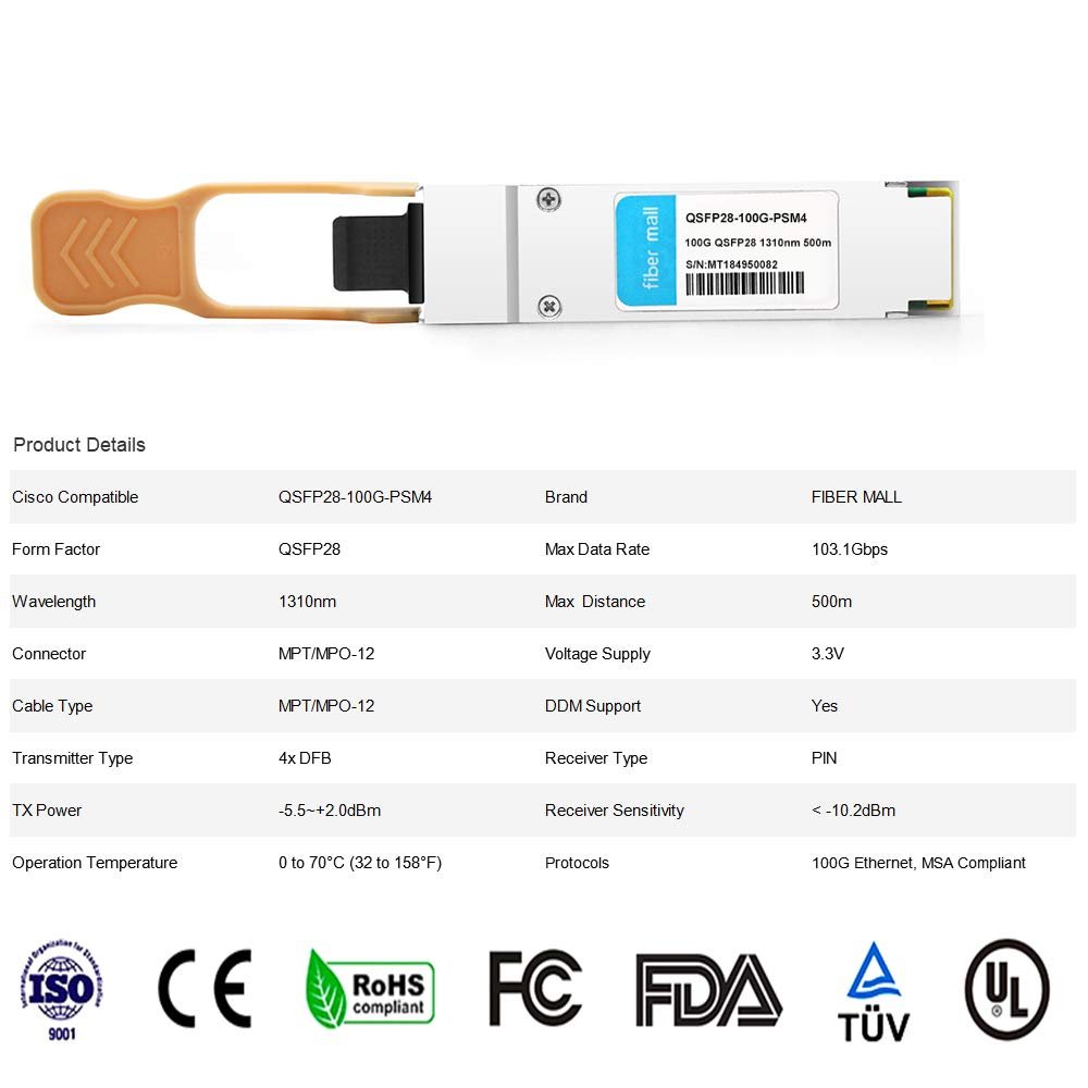 100G QSFP28 SR4 for Cisco QSFP-100G-SR4-S, 100GBASE-SR4 QSFP28 Optical Transceiver Module 850nm 100m DOM MTP/MPO DOM
