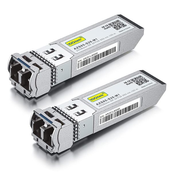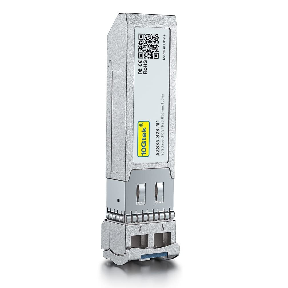 This 25GBase-SR Module is an 850 nm VCSEL 25Gigabit SFP28 transceiver. It is designed to transmit and receive optical data over 50/125μm multimode optical fiber (MMF) and support up to 70m on OM3 MMF and 100m on OM4 MMF. The module has a duplex LC optical interface and all mechanical characteristics are compliant with the current SFP+ specification (SFF-8431 and SFF-8432).