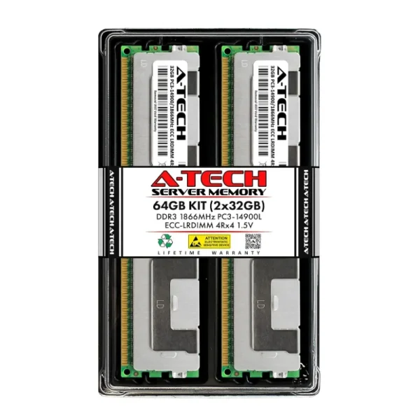 • 64GB Kit (2x32GB) DDR3 PC3-14900 4Rx4 1.5V ECC Load Reduced SERVER Memory Modules (Quad-Rank 240-Pin LRDIMM 1866MHz)