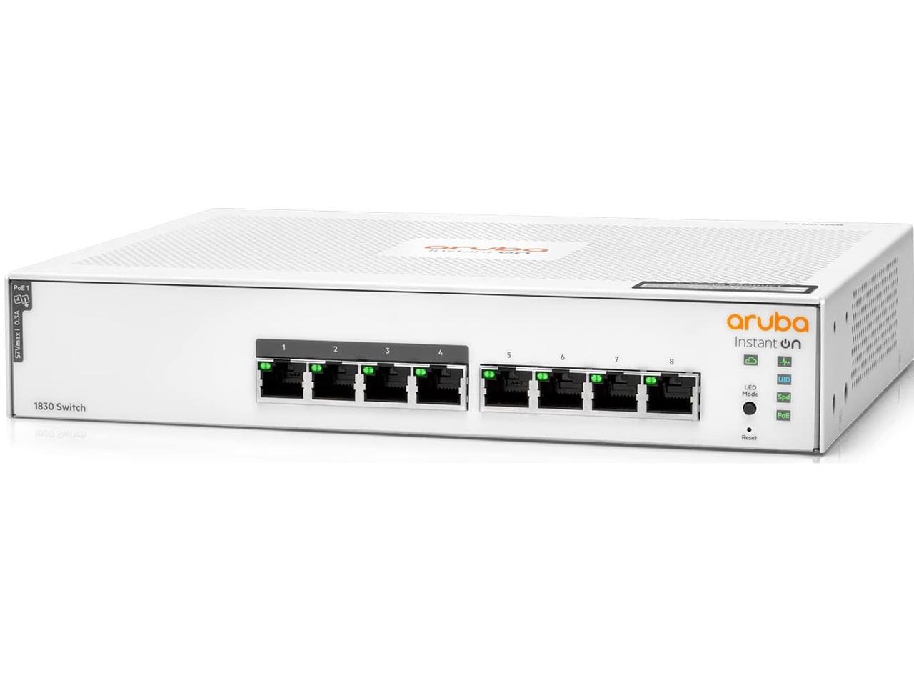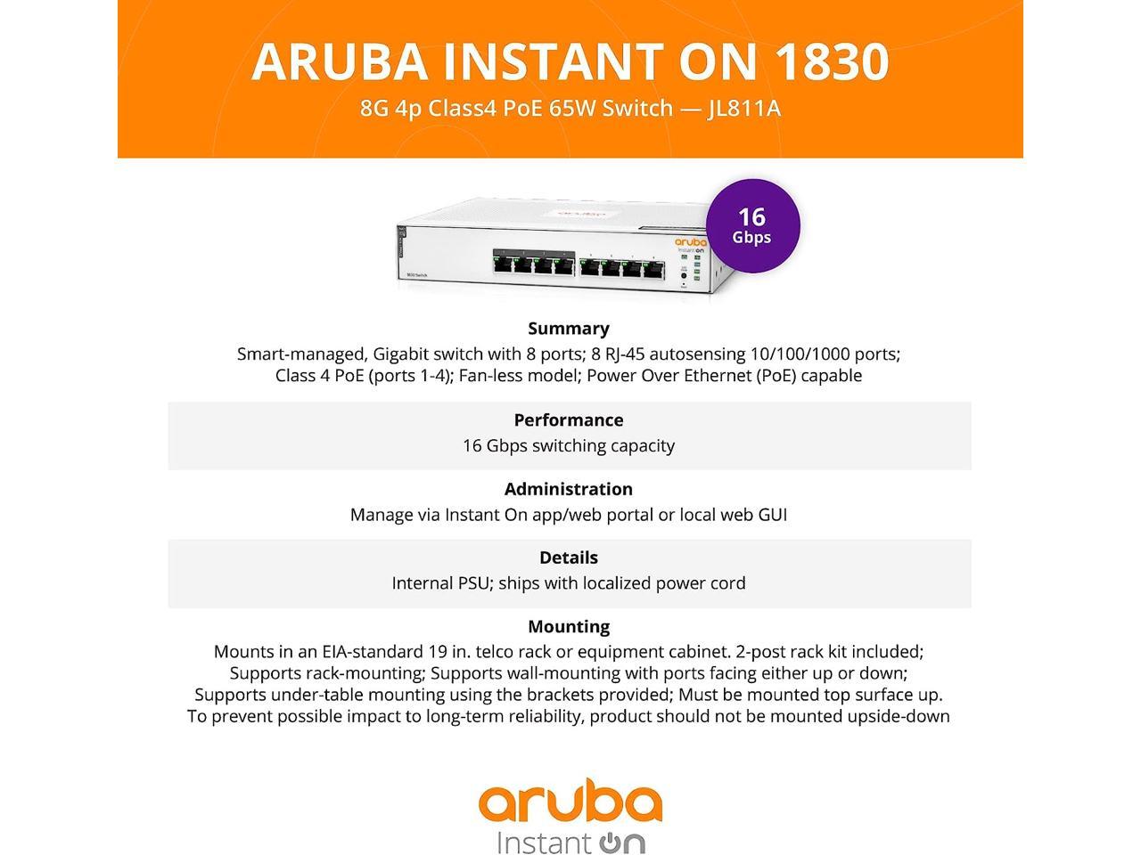 Aruba Instant On 1830 8-Port Gb | 4-Port Class 4 PoE Smart Switch (65W) – 8X 1G |Fanless | US Cord (JL811A#ABA)