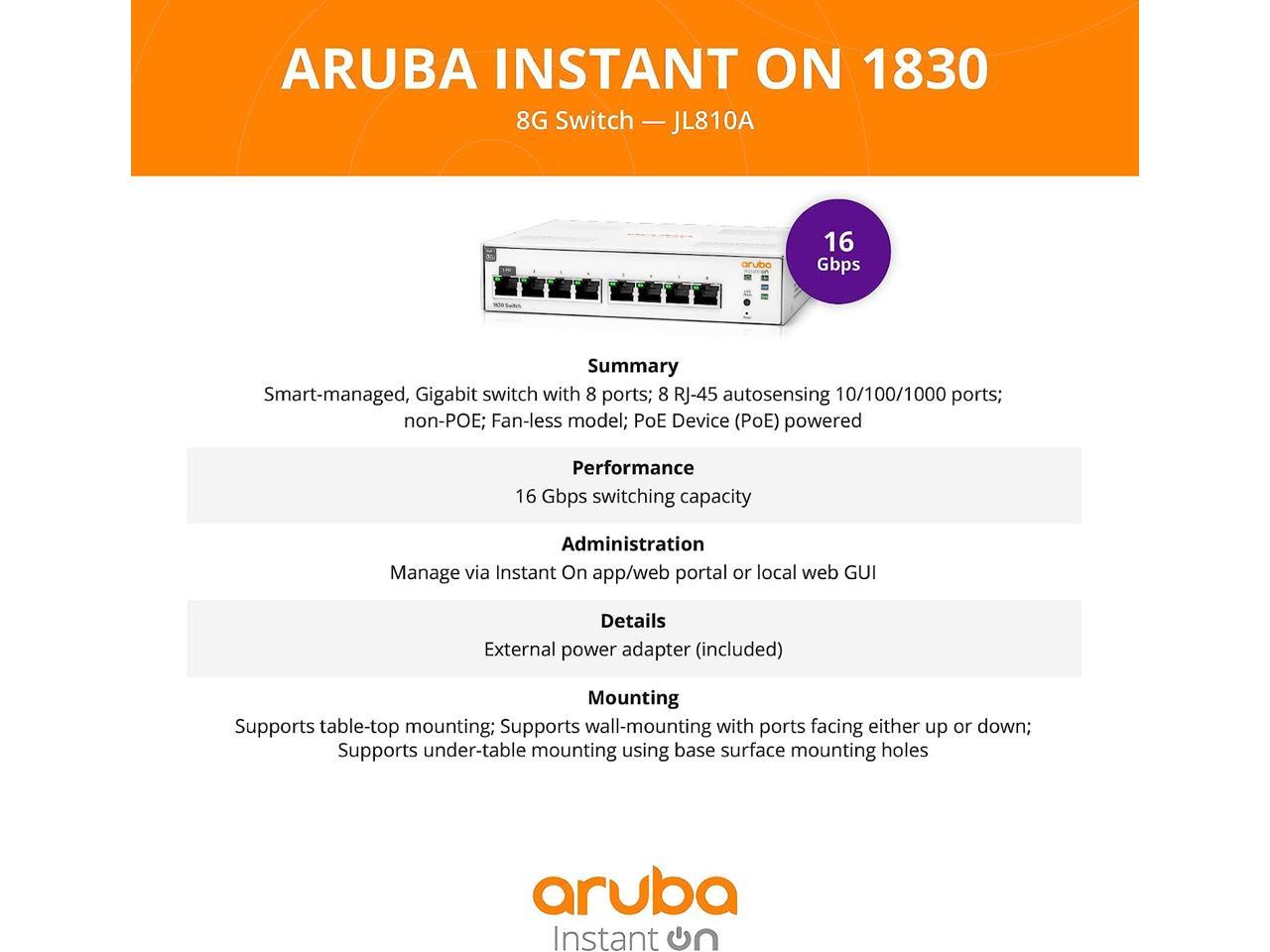 Aruba Instant On 1830 8-Port Gb Smart Switch | Fanless | US Cord (JL810A#ABA)