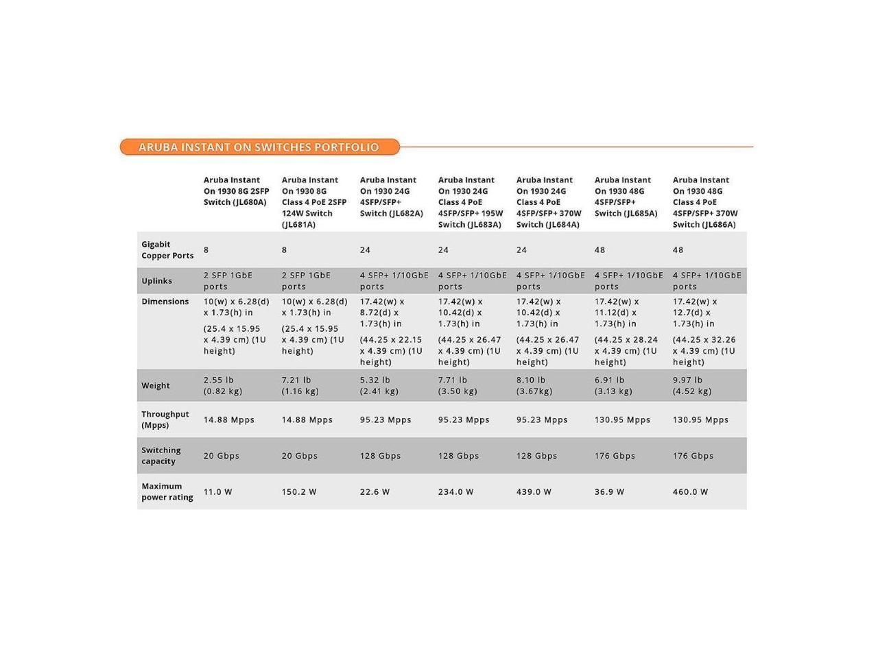 Aruba Portfolio of Switches