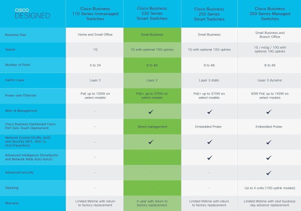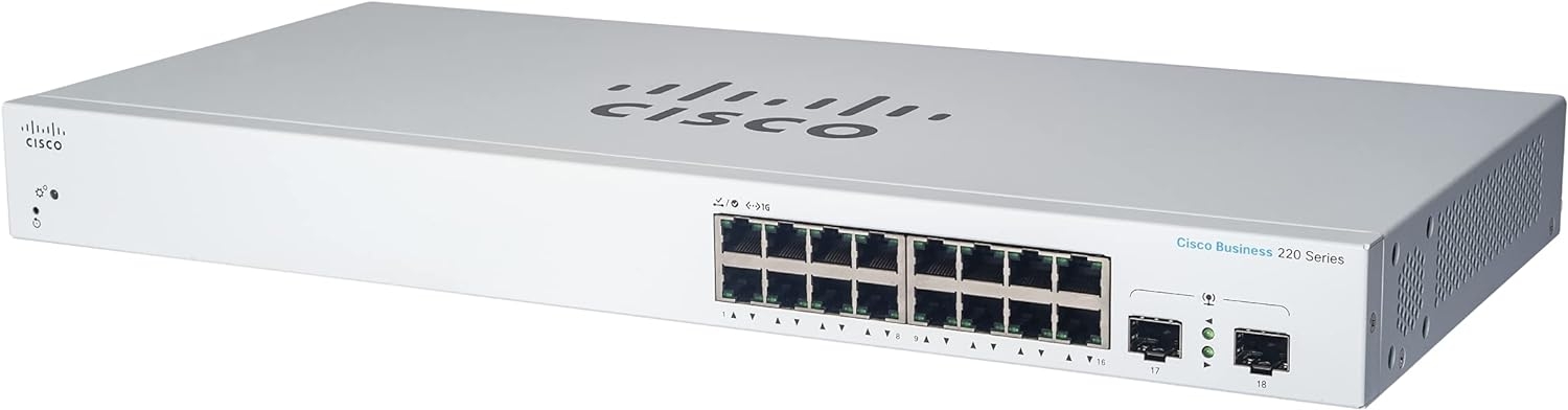The Cisco Business CBS220-16P-2G switch is simple and affordable smart switch for business-class network. CBS220 series bridge the gap between the affordability of an unmanaged device and the ease-of-use of smart switches. With their intuitive dashboard, mobile app support, and multiple Power over Ethernet (PoE) options, these switches deliver a solid business network.
