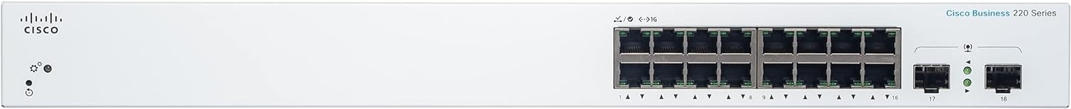 The Cisco Business CBS220-16T-2G switch is simple and affordable smart switch for business-class network. CBS220 series bridge the gap between the affordability of an unmanaged device and the ease-of-use of smart switches. With their intuitive dashboard, mobile app support, and multiple Power over Ethernet (PoE) options, these switches deliver a solid business network.