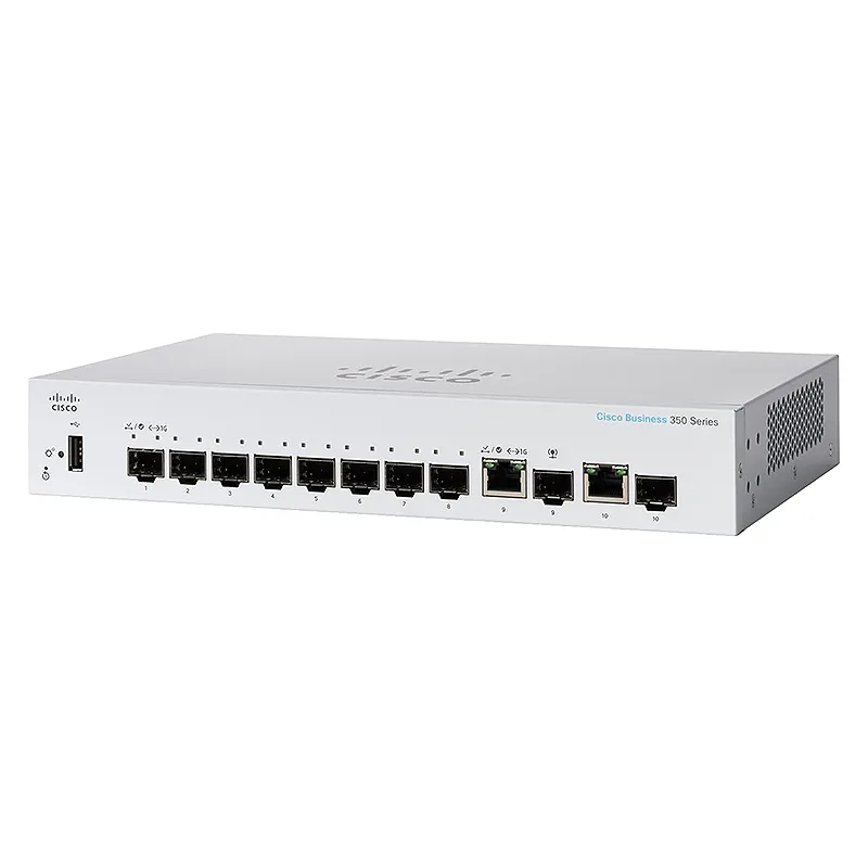 The Cisco Business CBS350-8S-E-2G switch is part of the fully managed switch line that delivers reliable and secure connectivity for small business networks. These switches accelerate your digital transformation by delivering full Layer 2/3 capabilities, intuitive web dashboard, advanced networking features, and PoE+ support.