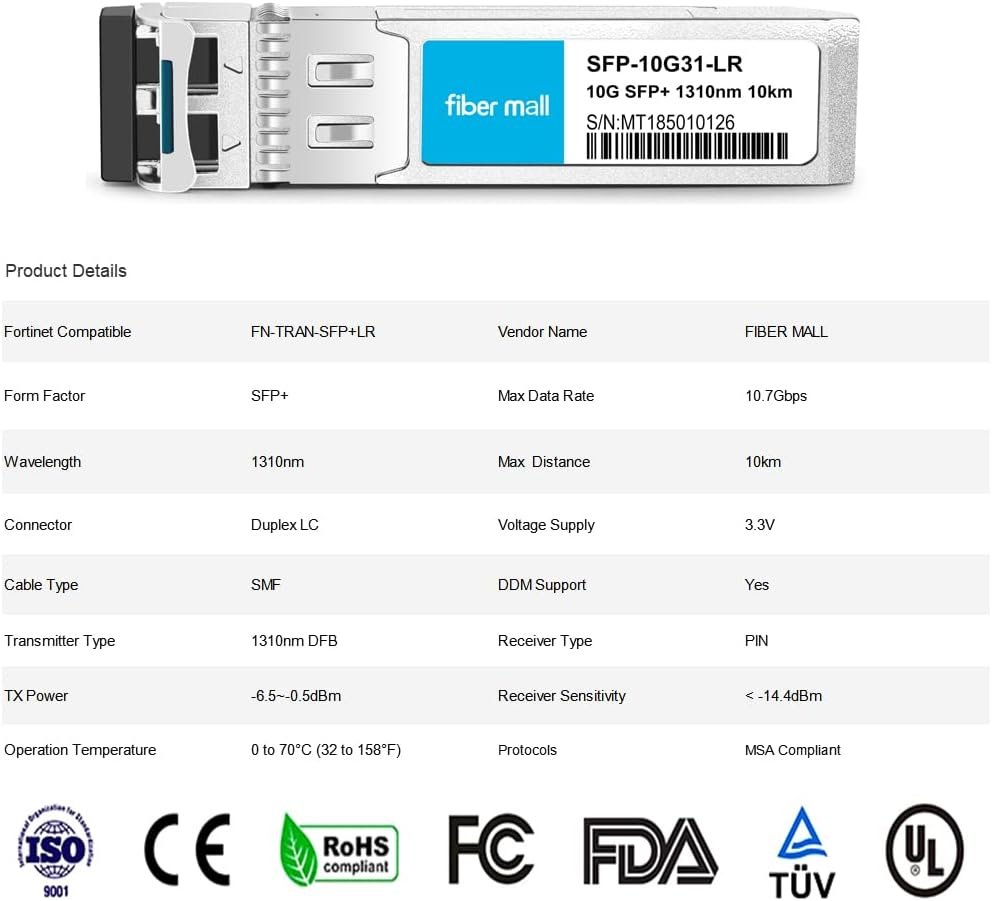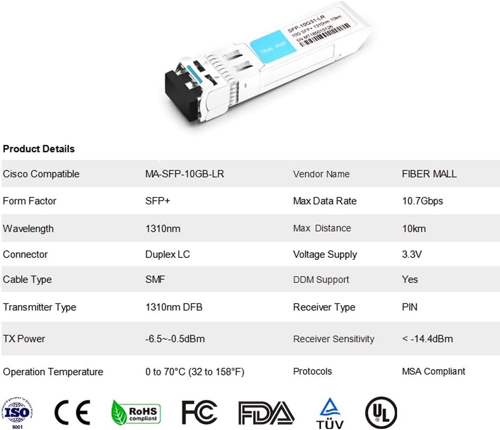 fibe mall SFP 10G LR for Cisco Meraki MA-SFP-10GB-LR 10GBASE-LR SFP+ 1310nm 10km DOM Transceiver Module