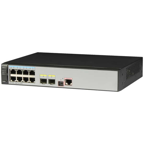 Huawei S5700-10P-LI-AC(supports 8 10/100/1000BASE-T ports, 2 GE SFP ports, fixed DC power)