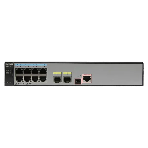 Huawei S5700-10P-LI-AC(supports 8 10/100/1000BASE-T ports, 2 GE SFP ports, fixed DC power)