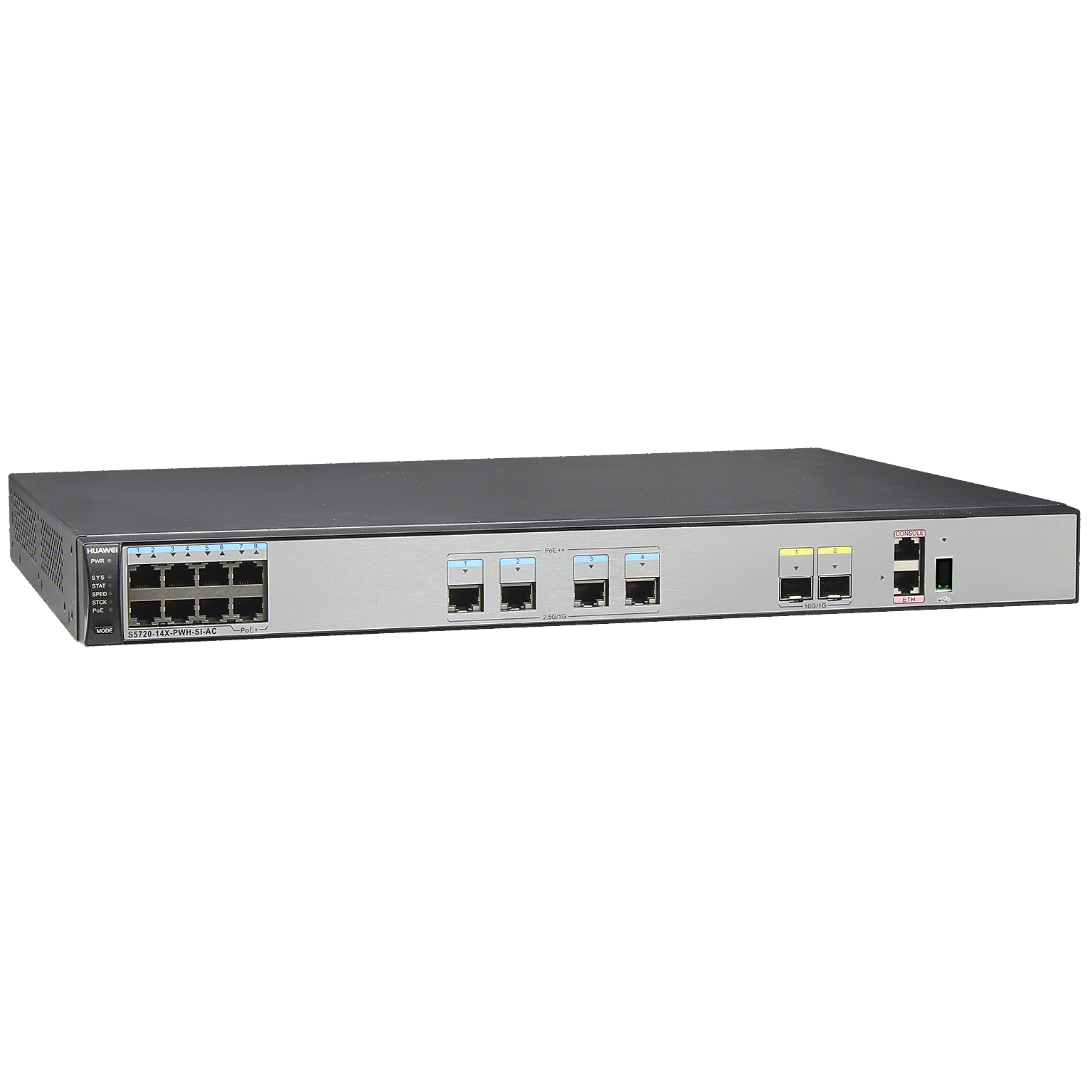 Huawei S5720-14X-PWH-SI-AC(switch with 8-port 1000BASE-T PoE+, 4-port 2.5GE BASE-T PoE++, 2-port 10GE SFP+, 1 AC power fixed)