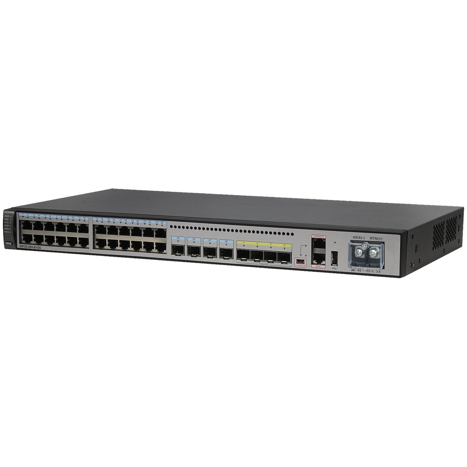 Huawei S5720-32X-EI-DC (24 Ethernet 10/100/1000 ports,4 Gig SFP,4 10 Gig SFP+,DC -48V,front access)