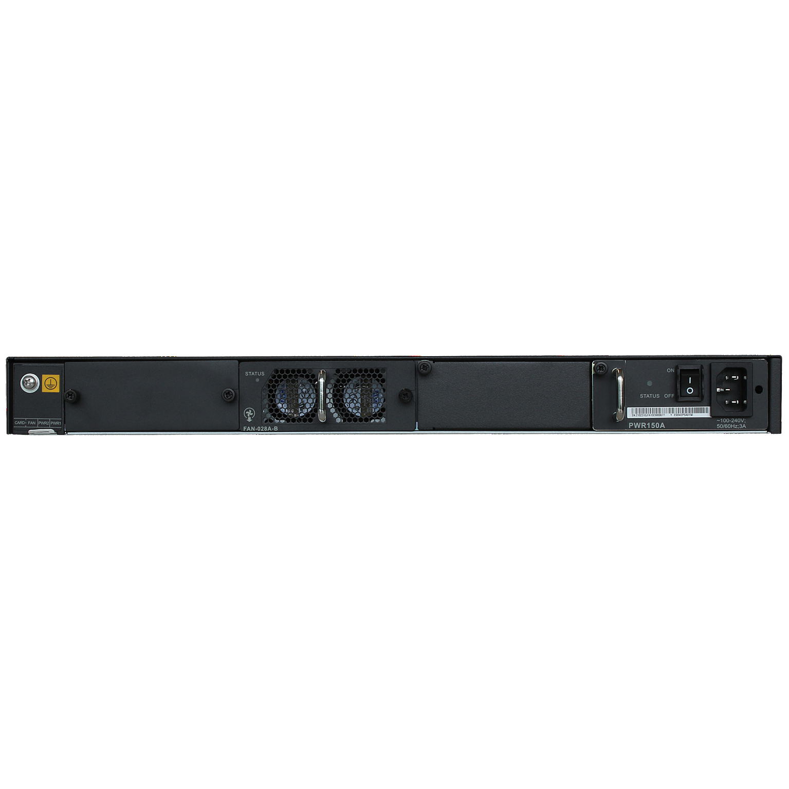 | Typical power consumption (30% of traffic load) Tested according to ATIS standard EEE enabled No PoE power consumption | 39.5 W (without card), 47.28 W (with 2*10GE optical card), 52.17 W (with 2*QSFP+ stack card), 55.14 W (with 2*10GE electrical card) |