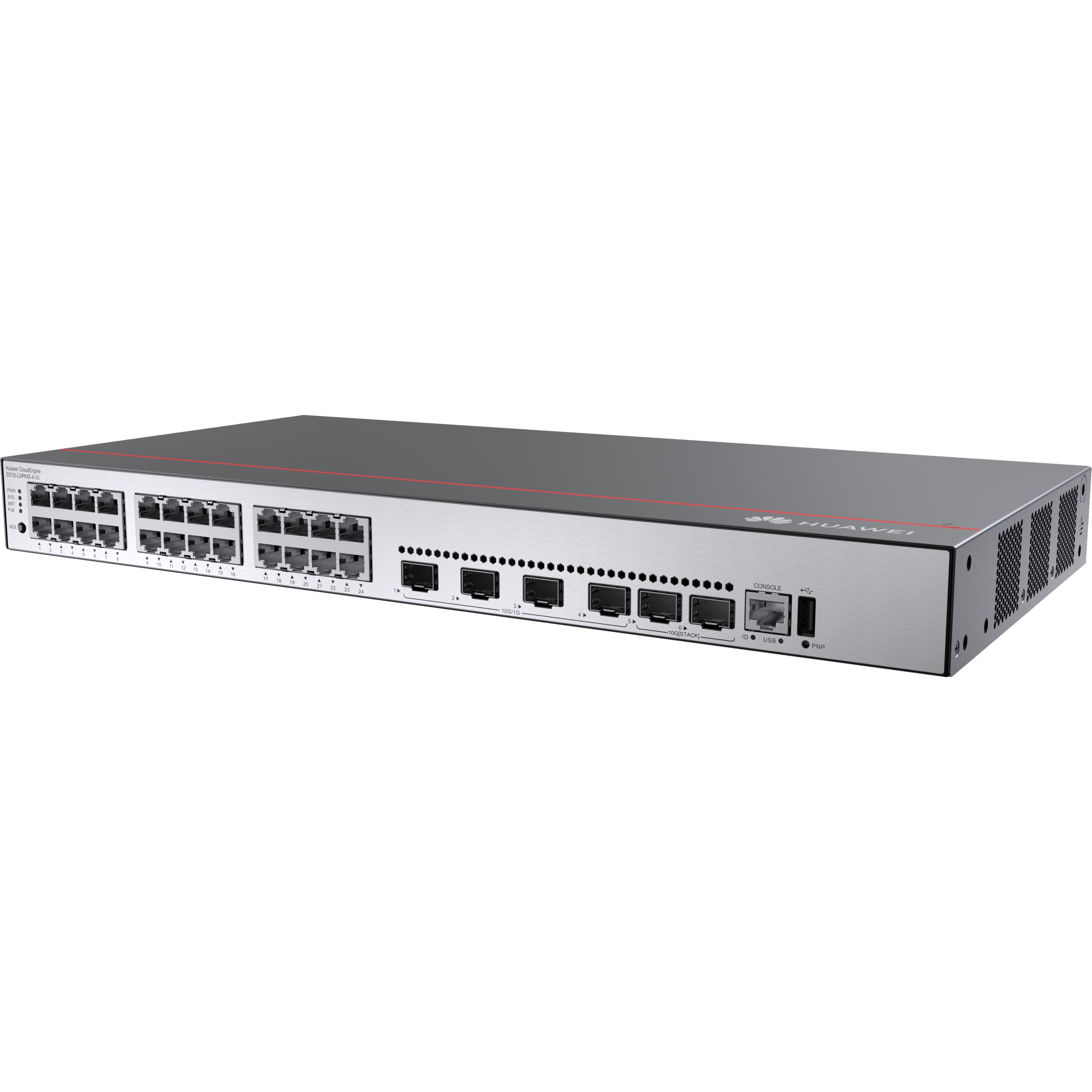 Huawei S5735-L24P4XE-A-V2 (24*10/100/1000BASE-T ports, 4*10GE SFP+ ports, 2*12GE stack ports, PoE+, AC power)