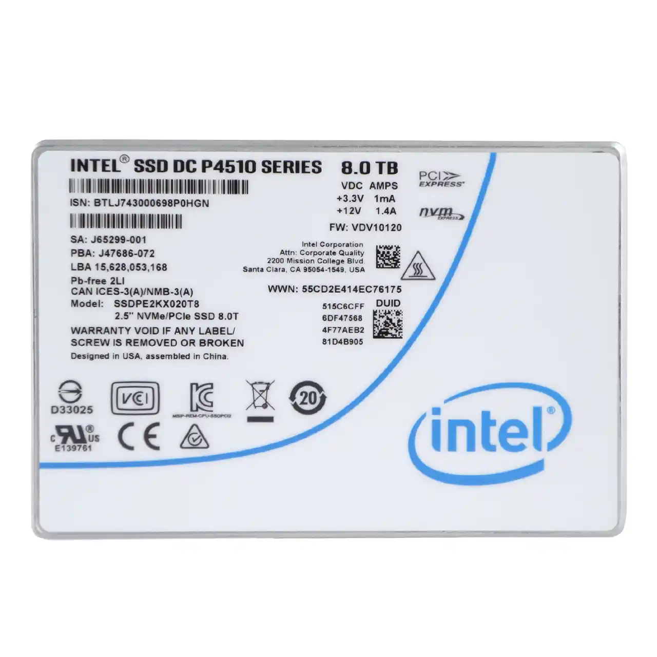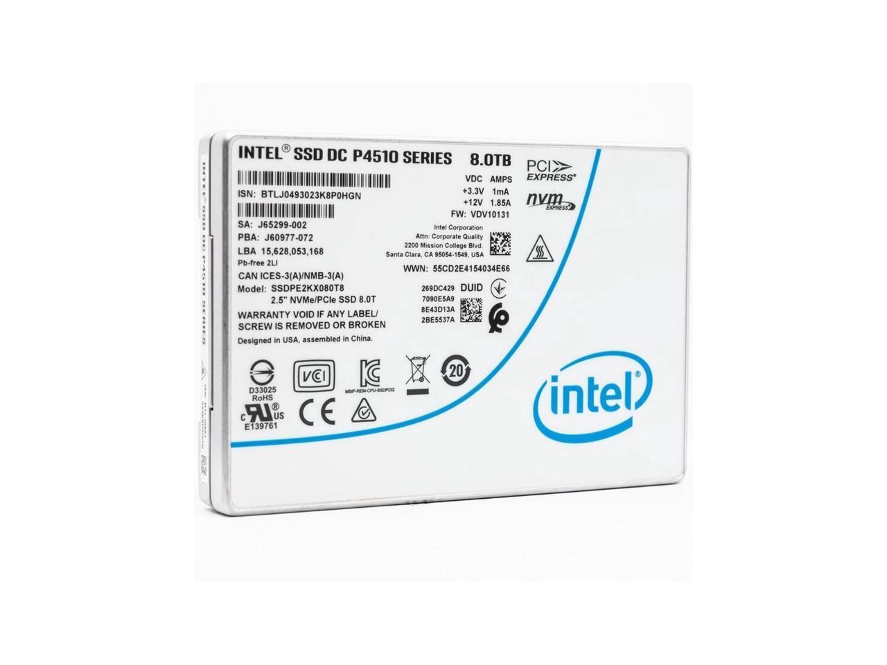 Intel DC P4510 2.5″ U.2 8TB PCIe NVMe 3.1 x4 64-Layer 3D TLC NAND Solid State Disk – Enterprise