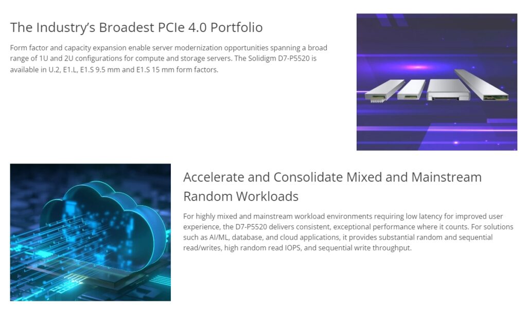 Intel Solidigm D7-P5520 Series Solid State Drive (SSDPF2KX076T1N1) (7.68TB, U.2 15mm, 2.5″, PCIe 4.0 x4, 3D4, TLC) Generic No OPAL Single Pack Data Center / Server / Internal SSD