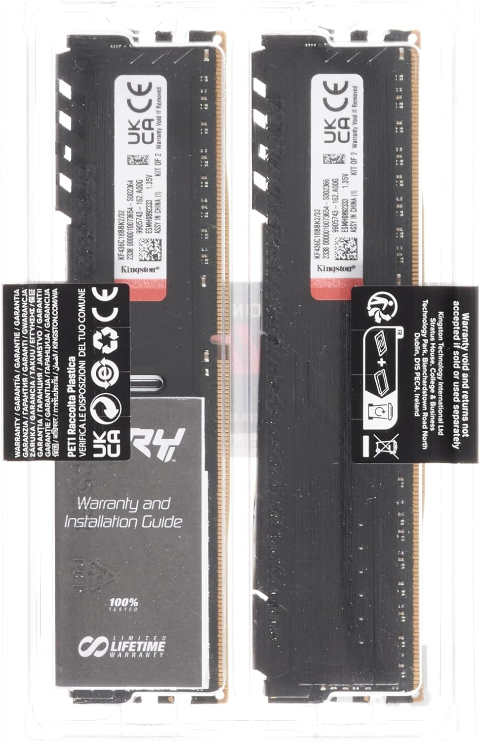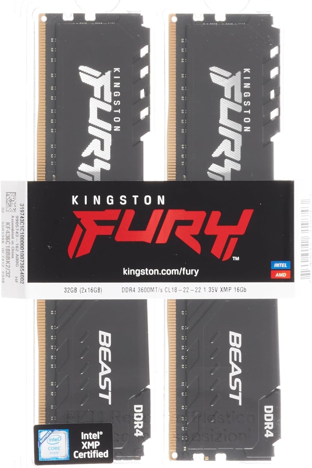 Kingston Fury Beast 32GB (2x16GB) 3600MT/s DDR4 CL18 Desktop Memory Kit of 2 KF436C18BBK2/32