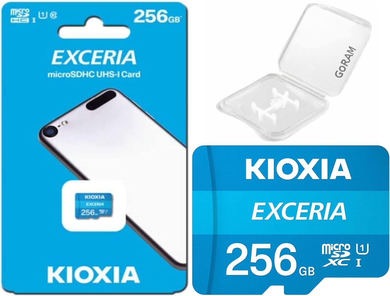 Kioxia Exceria 256GB MicroSD UHS-I Class 10 Full HD 100MB/s MicroSDHC Memory Card for Smartphone & Tablet Bundle with (1) GoRAM Plastic Case (256GB, 1 Pack)