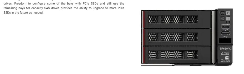 The SR650 V2 is designed to handle a wide range of workloads, such as databases, virtualization and cloud computing, virtual desktop infrastructure (VDI), infrastructure security, systems management, enterprise applications, collaboration/email, streaming media, web, and HPC.