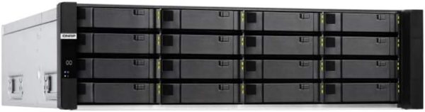 Delivering enterprise high availability, the ES1686dc Enterprise ZFS NAS features Intel Xeon D processors, dual active controllers, up to 512 GB DDR4 ECC memory, SAS 12Gb/s, and ZFS that supports logical volume management. The ES1686dc runs the latest QES 2. 1. 0 operating system that supports near-limitless snapshots, SnapSync, block-level data deduplication, and inline data compression. Whether being used as a mission-critical file server, virtualization server, VDI, medium-sized data center, video streaming, surveillance storage, and efficient file backup & recovery, the ES1686dc helps your business to achieve service-level agreements for performance and uptime. Intel Xeon D dual active-active controllers provide supreme uptime and redundancy to ensure high availability. Battery-protected DRAM write to cache data protection and Flash read acceleration provides industry-leading random access performance. Two M. 2 SSD slots allow for implementing SSD cache acceleration. Four 10GbE SFP+ ports accelerate virtualization, large file sharing, and intensive data transfer. Near-limitless snapshots and SnapSync for snapshot remote backup assist businesses to resume essential services in the shortest time. Supports VMware vSphere 6. 5, Windows Server 2016 and Citrix XenServer 7. 0 for storage virtualization. Compatible with OpenStack cloud environments.