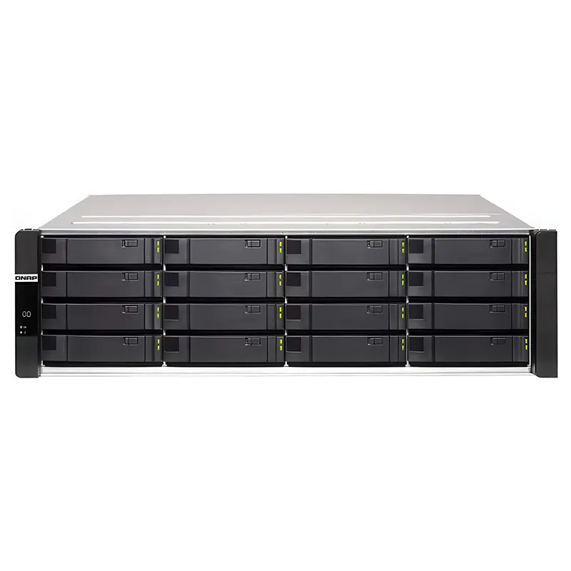 Delivering enterprise high availability, the ES1686dc Enterprise ZFS NAS features Intel Xeon D processors, dual active controllers, up to 512 GB DDR4 ECC memory, SAS 12Gb/s, and ZFS that supports logical volume management. The ES1686dc runs the latest QES 2. 1. 0 operating system that supports near-limitless snapshots, SnapSync, block-level data deduplication, and inline data compression. Whether being used as a mission-critical file server, virtualization server, VDI, medium-sized data center, video streaming, surveillance storage, and efficient file backup & recovery, the ES1686dc helps your business to achieve service-level agreements for performance and uptime. Intel Xeon D dual active-active controllers provide supreme uptime and redundancy to ensure high availability. Battery-protected DRAM write to cache data protection and Flash read acceleration provides industry-leading random access performance. Two M. 2 SSD slots allow for implementing SSD cache acceleration. Four 10GbE SFP+ ports accelerate virtualization, large file sharing, and intensive data transfer. Near-limitless snapshots and SnapSync for snapshot remote backup assist businesses to resume essential services in the shortest time. Supports VMware vSphere 6. 5, Windows Server 2016 and Citrix XenServer 7. 0 for storage virtualization. Compatible with OpenStack cloud environments.