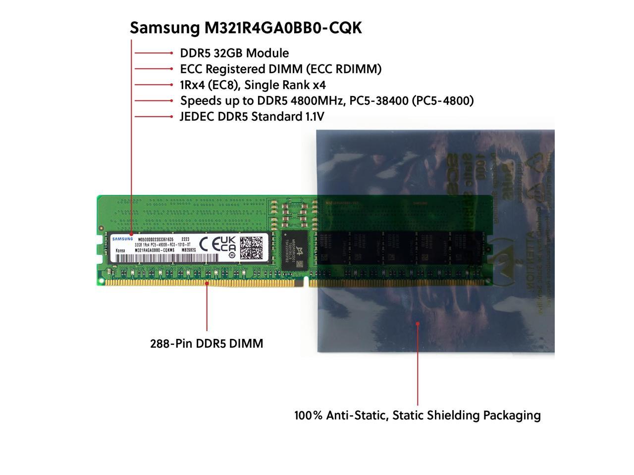 Samsung M321R4GA0BB0-CQK 32GB DDR5-4800 REG EC8 RDIMM PC5-38400R ECC Registered DIMM 288-Pin 1Rx4 1.1V Server Memory RAM Module