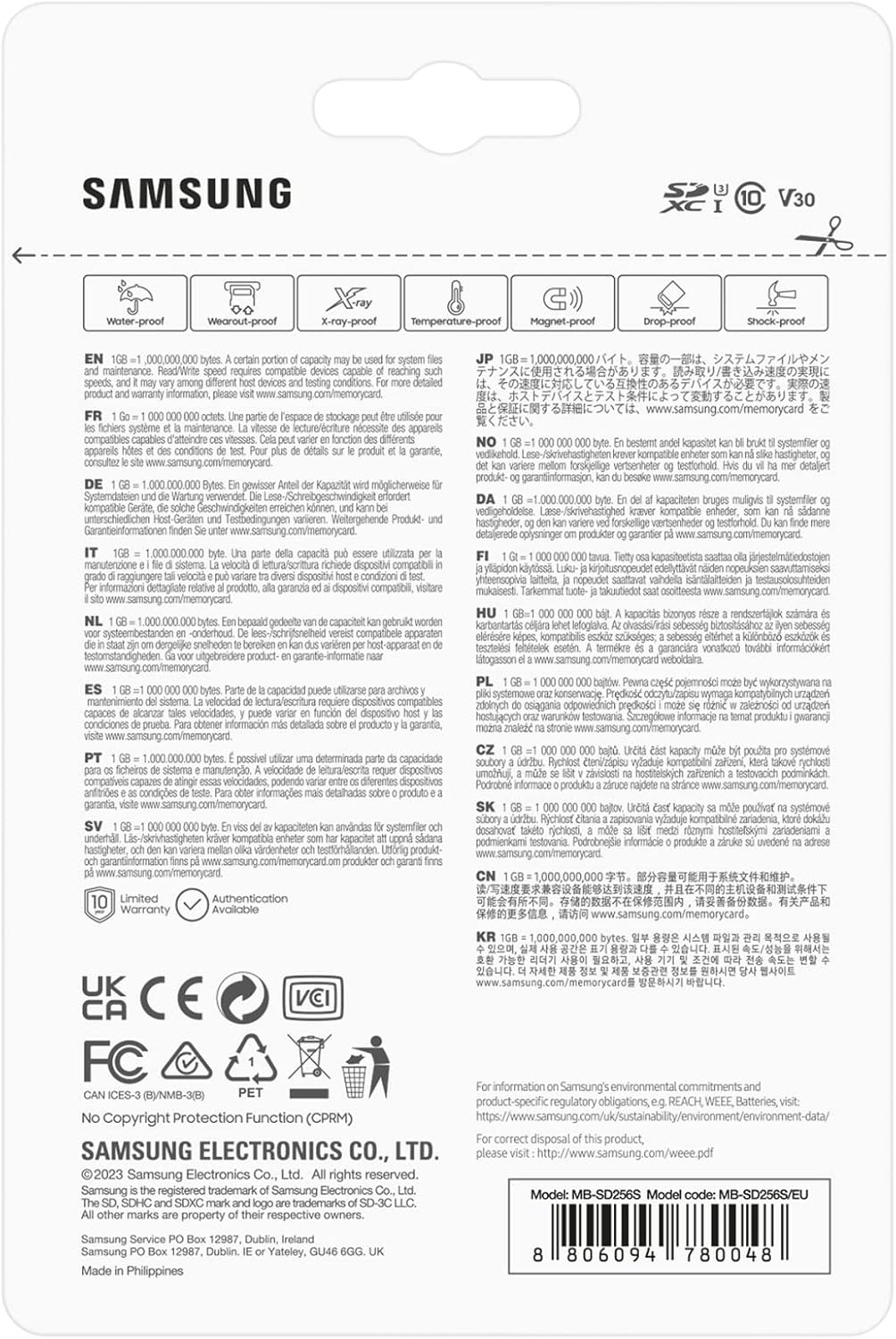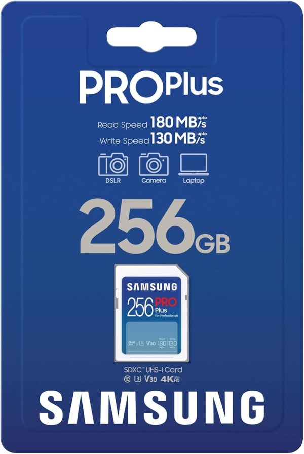 Samsung PRO Plus SD Card, 256GB, UHS-I U3, Full HD & 4K UHD, 180MB/s Read, 130MB/s Write, Memory Card for SLR Cameras and System Cameras, MB-SD256S/APC