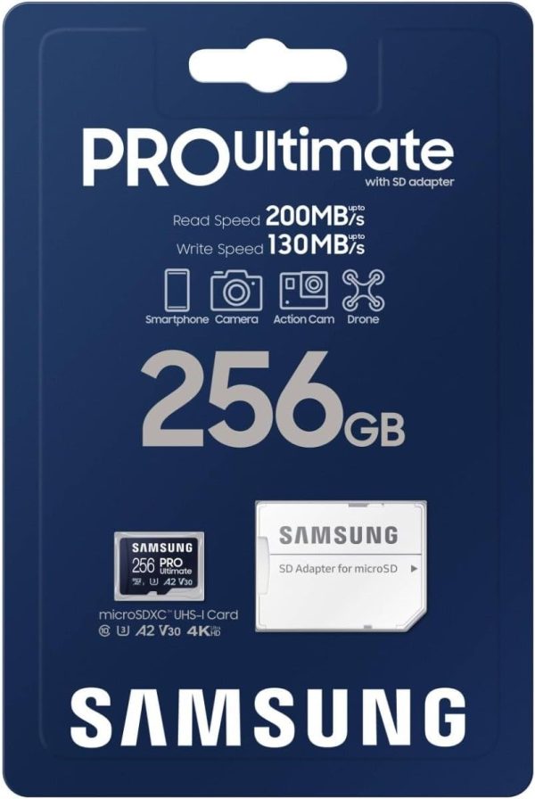 Samsung Pro Ultimate MB-MY256SB/WW MicroSD Card + USB Card Reader for Smartphones, Drone and Action Camera, UHS-I U3, 200MB/s Reading, 130MB/s Write, 256GB