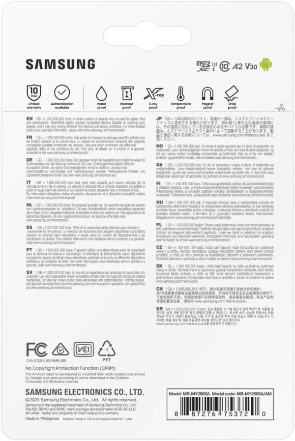 ¹ The aforementioned read and write speeds are based on internal tests carried out under controlled conditions. Actual speeds may vary depending on card capacity. The indicated performance was obtained by using microSD PRO Ultimate cards with Samsung readers. ² UHS Speed Class 3 is a performance option designed to support 4K UHD video recording with UHS compatible host devices. UHS Video Speed Class 30 (V30), sustained video capture rate of 30MB/s, denotes a performance option designed to support real-time video recording with UHS compatible host devices. See Speed Class | SD Association. ³ 4K UHD video support (3840 x 2160) for 512GB, 256GB and 128GB cards. Host device compatibility may vary. ⁴ A2 performance corresponds to 4000 IOPS read and 2000 write IOPS.
