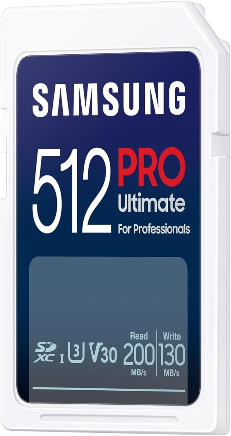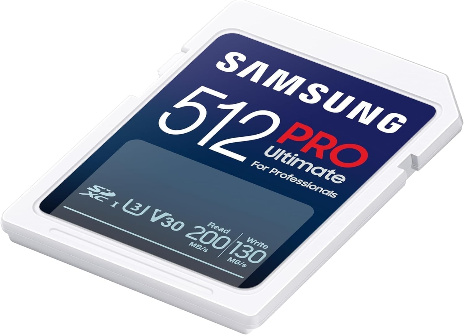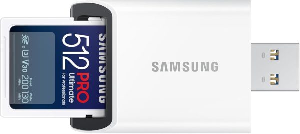 Samsung PRO Ultimate SD card, 512 GB, UHS-I U3, Full HD & 4K UHD, 200 MB/s read, 130 MB/s write, Memory card for smartphone, Drone or action cam, Includes USB card reader, MB-SY512SB/WW
