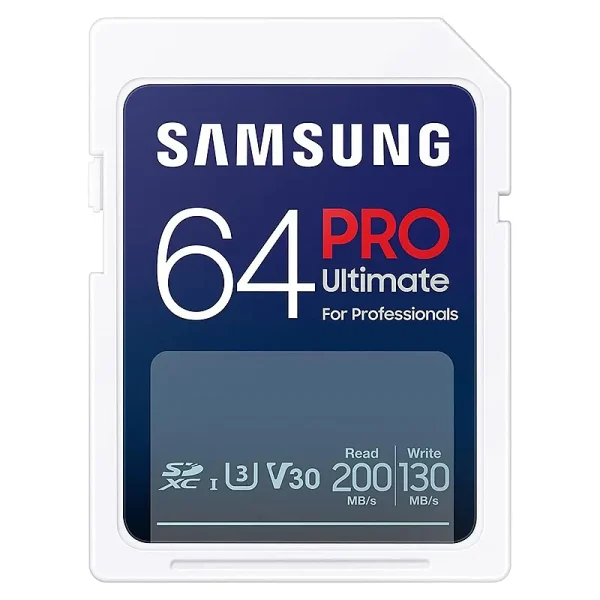 Samsung PRO Ultimate SD card, 64 GB, UHS-I U3, Full HD & 4K UHD, 200 MB/s read, 130 MB/s write, Memory card for smartphone, Drone or action cam, Includes USB card reader, MB-SY64SB/WW