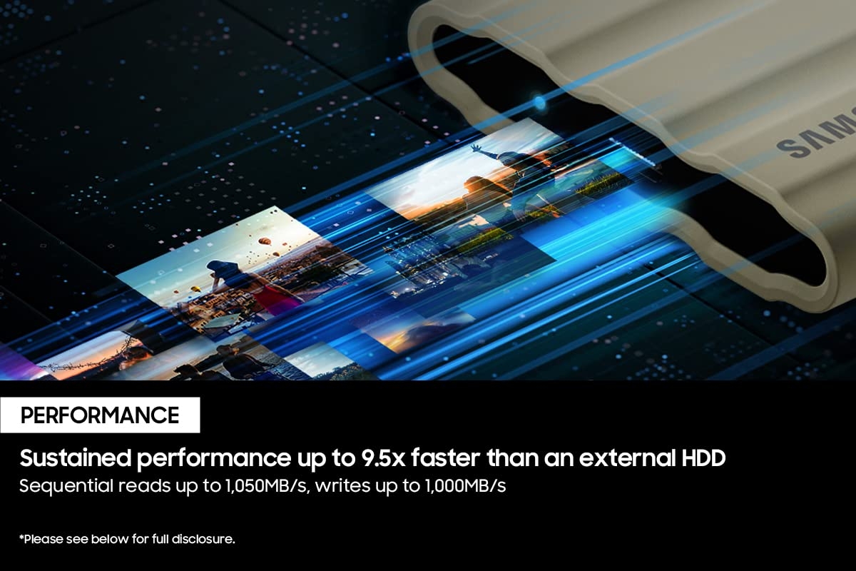 Samsung Portable SSD T7 Shield is a rubber protected external storage device for outdoor users, and contents creators which features outstanding performance and strengthened durability. The T7 Shield earns consumer trust with its high compatibility