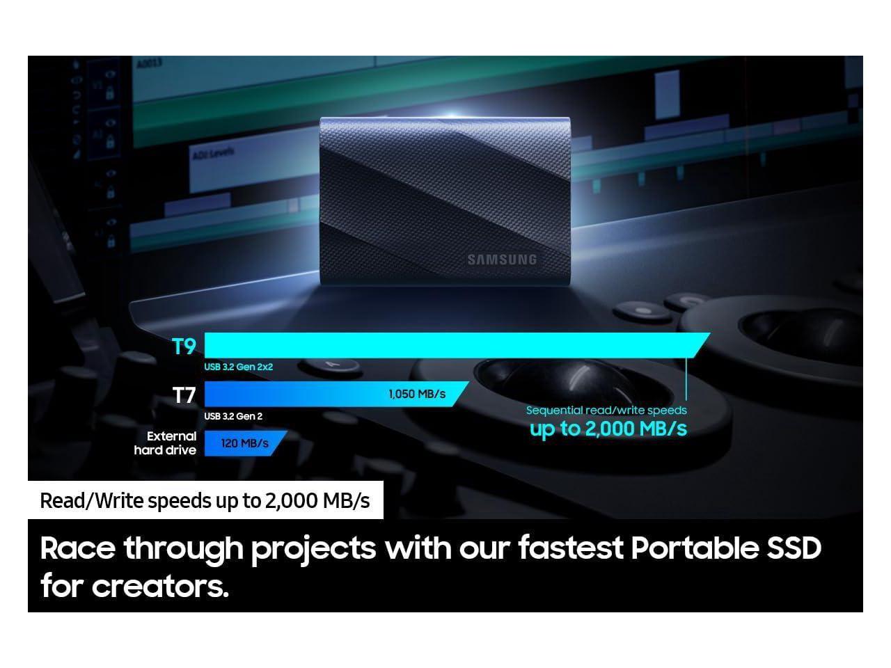 SAMSUNG T9 Portable SSD 2TB Black, Up-to 2,000MB/s, USB 3.2 Gen2, Ideal use for Gaming, Students and Professionals, External Solid State Drive MU-PG2T0B