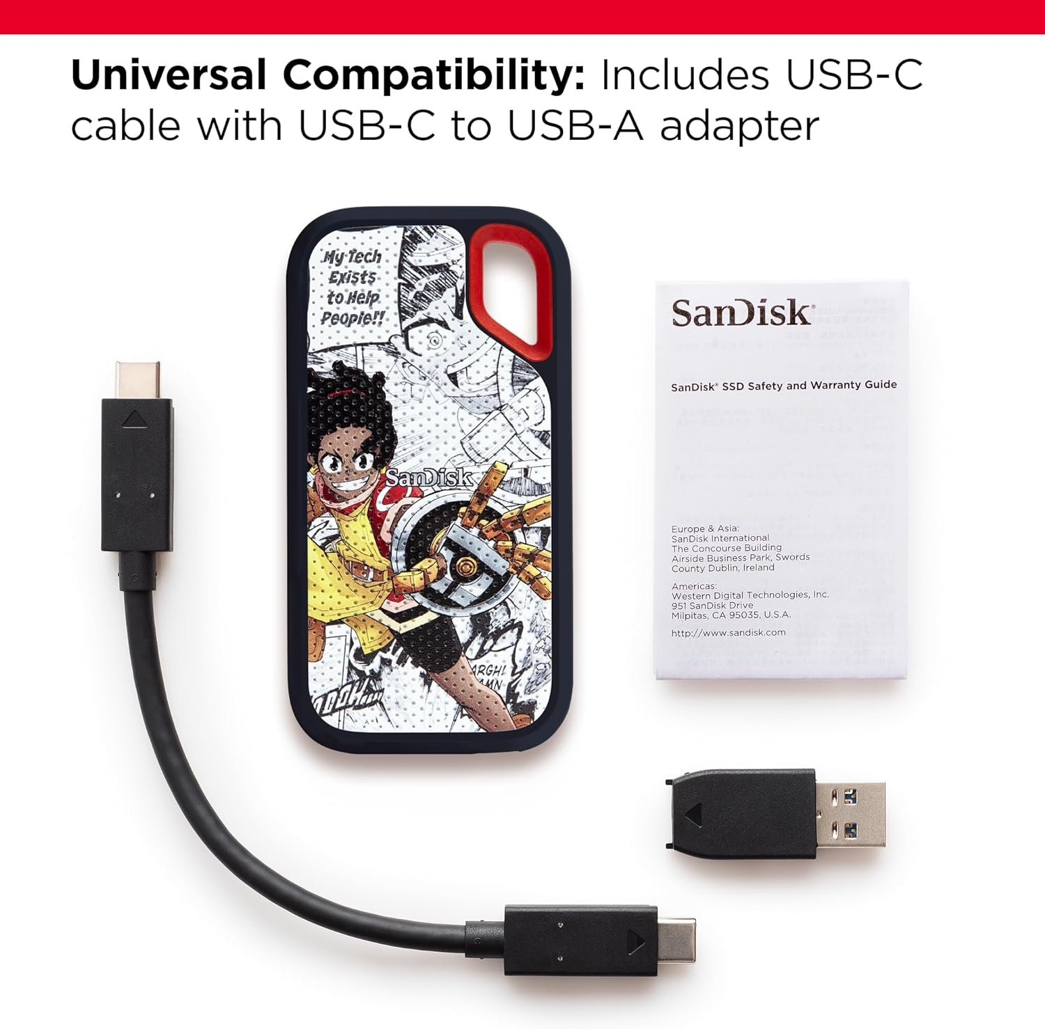 Your lifes an adventure. To capture and keep its best moments, you need fast, high-capacity storage that accelerates every move. 1050MB/s read and 1000MB/s write speeds let you store your content and creations on a fast drive that fits seamlessly into your active lifestyle. Up to two-meter drop protection (3), with IP55 water and dust resistance (3), a Carabiner loop for securing the drive. From the brand trusted by professional photographers, the SanDisk Extreme Portable SSD provides fast solid state performance in a tough, reliable storage solution. 1GB = 1,000,000,000 bytes, 1TB = 1,000,000,000,000 bytes. Actual user capacity less. Up to 1050MB/s read speed, up to 1000MB/s write speed. Engineered with proprietary technology to reach speeds beyond UHS-I 104MB/s, requires compatible devices capable of reaching such speed. Based on internal testing; Performance may be lower depending on host device, interface, usage conditions and other factors. 1MB=1,000,000 bytes. (1) See official SanDisk website. (2) Password protection uses 256-bit AES encryption and is supported by Windows 8, Windows 10 and macOS v10.9+ (Software download required for Mac, see official SanDisk website.) (3) Based on internal testing. IPEC 60529 IP 55: Tested to withstand water flow (30 kPa) at 3 min; Limited dust contact does not interfere with the operation. Must be clean and dry before use.