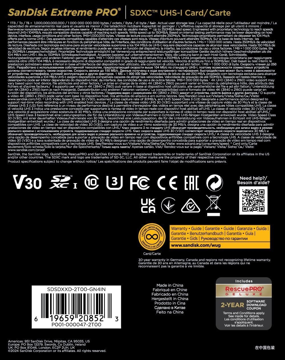 SanDisk 2TB Extreme PRO SDXC UHS-I Memory Card – Up to 250MBs – C10, U3, V30, 4K UHD, SD Card – SDSDXXD-2T00-GN4IN