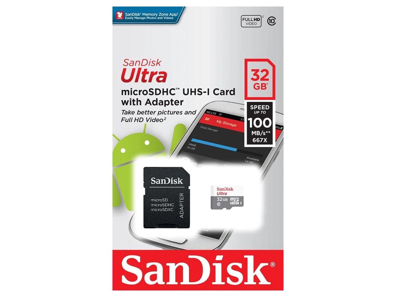 SanDisk 32GB Mobile Ultra microSDHC Class 10 UHS-1 30MB/s Memory Card with SD Adapter Model SDSDQUA-032G-U46A