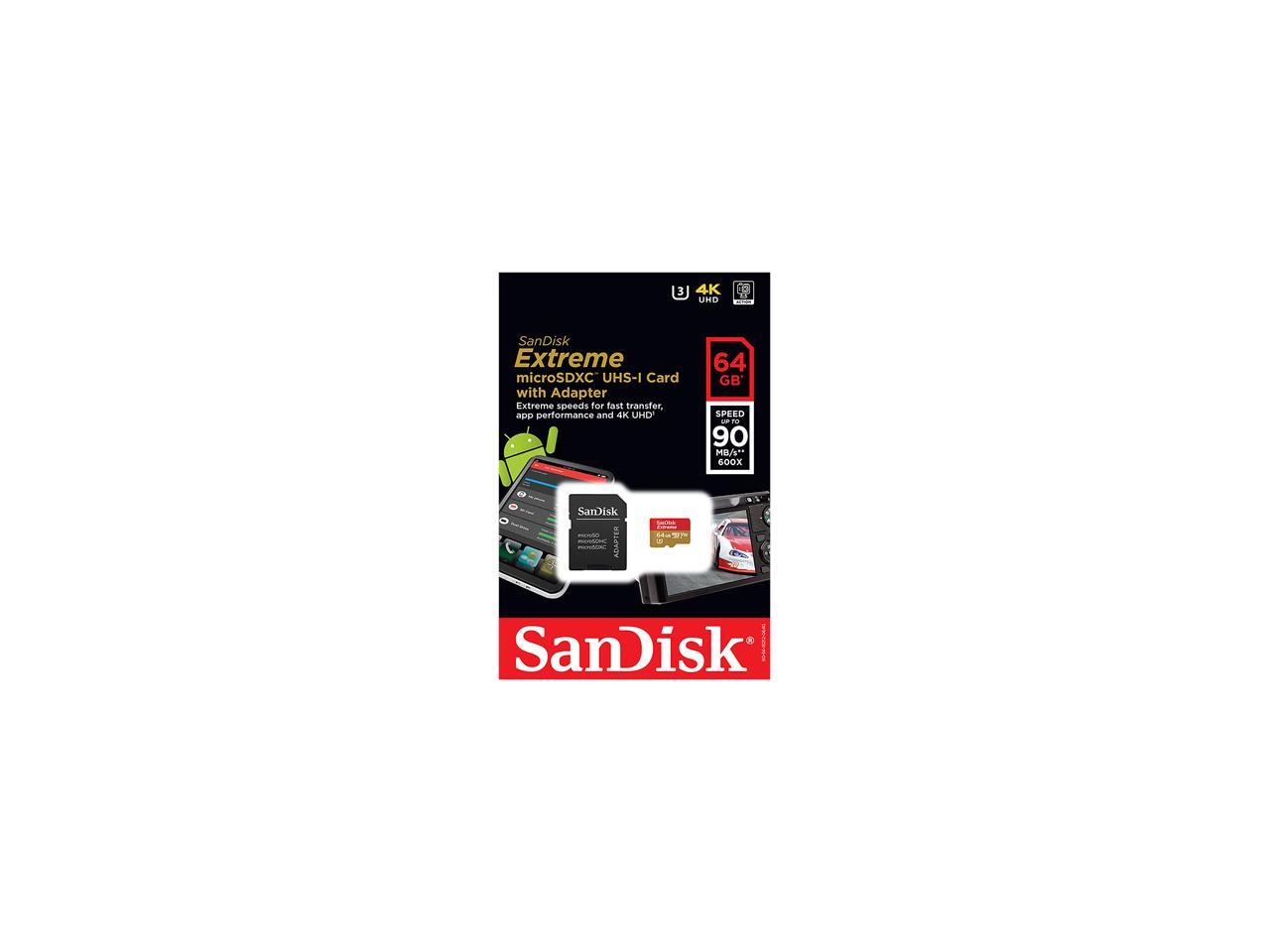SanDisk 64GB Extreme microSDXC UHS-I/U3 Class 10 Memory Card with Adapter, Speed Up to 90MB/s (SDSQXVF-064G-GN6MA)