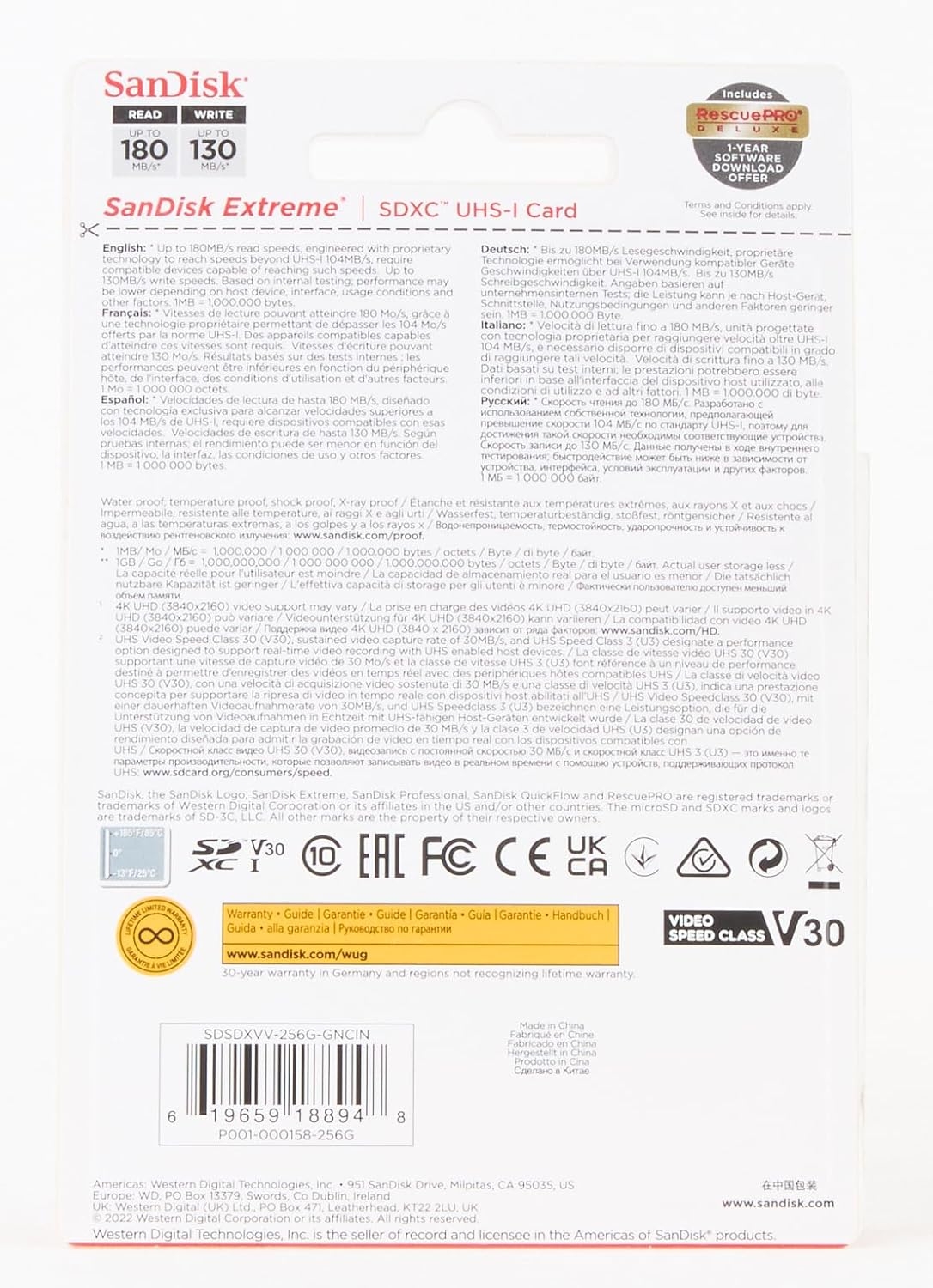 Product specifications subject to change without notice. Pictures shown may vary from actual products. SanDisk, the SanDisk logo, SanDisk Professional, SanDisk Extreme, SanDisk QuickFlow and RescuePRO are registered marks or marks of Western Digital Corporation or its affiliates in the US and/or other countries. The microSD, SDHC, and SDXC marks and logos are marks of SD-3C, LLC. All other marks are the property of their respective owners.