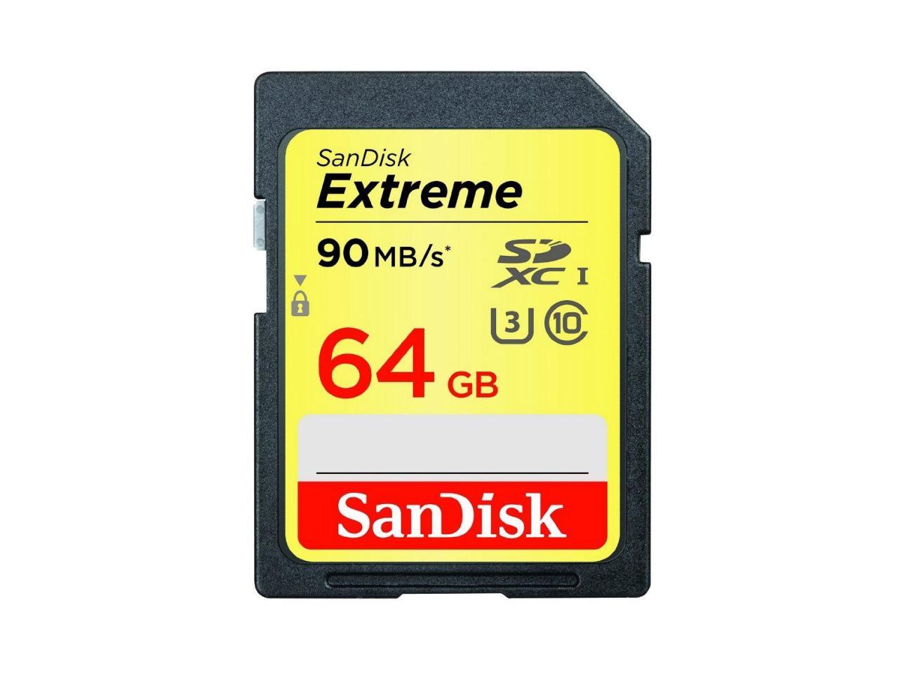 SanDisk 64GB Extreme SDXC UHS-I/U3 Class 10 Memory Card, Speed Up to 90MB/s (SDXVF-064G-G46)