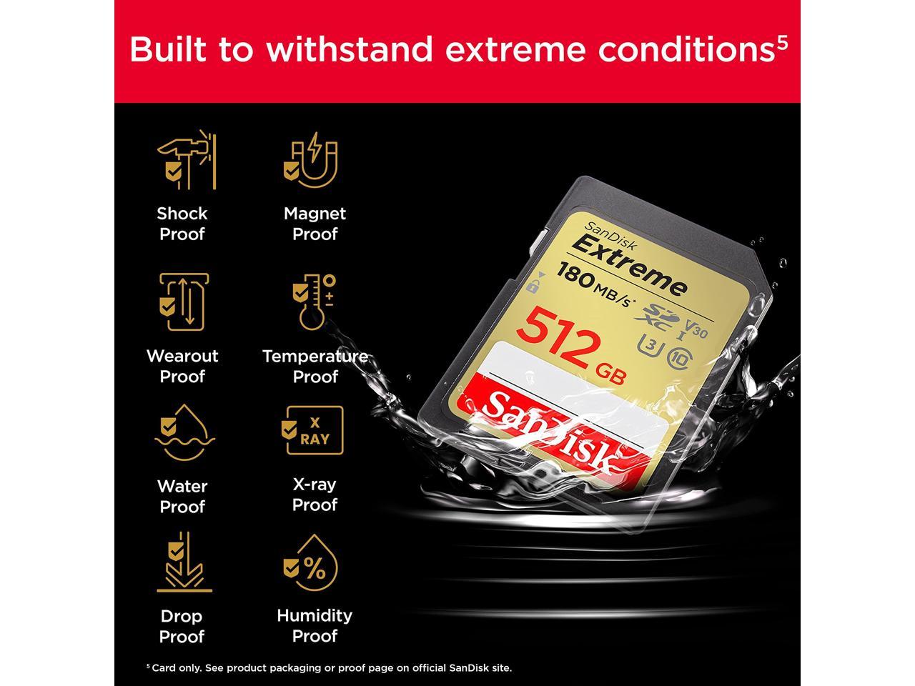 SanDisk Extreme 512GB Secure Digital Extended Capacity (SDXC) Flash Card Model SDSDXVV-512G-GNCIN