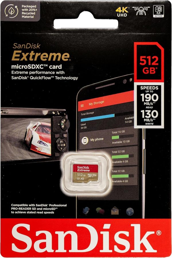 SanDisk Micro Extreme 512GB SDXC UHS-I U3 V30 Memory Card Works with Camera GoPro Action Camera Hero 12 Black (SDSQXAV-512G-GN6MN) Bundle with Everything But Stromboli MicroSD Card Reader