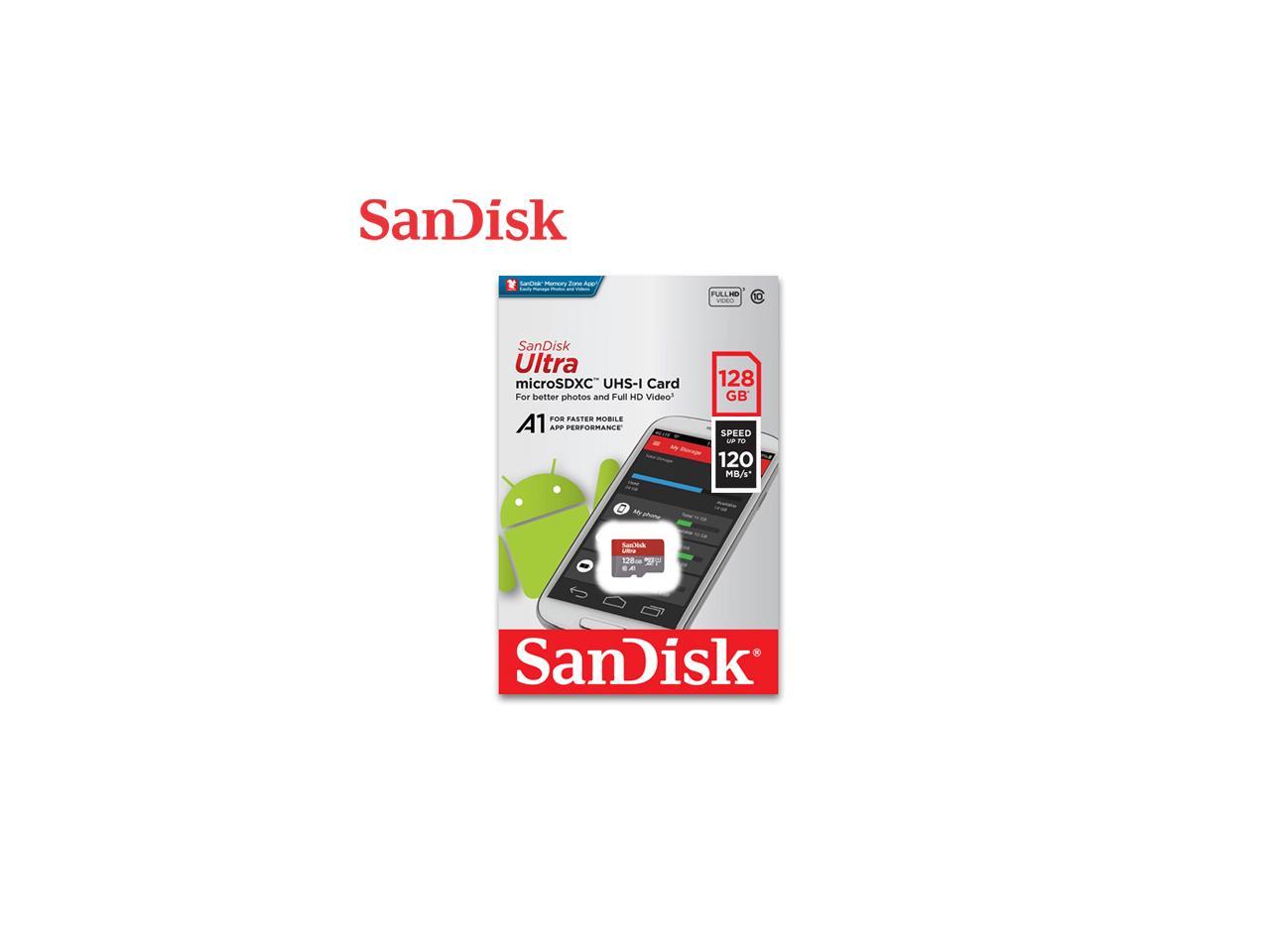 Blazing transfer speeds let you move photos fast. [16GB], Blazing transfer speeds mean that your content moves fast letting you move up to 1000 photos in a minute. [32GB-1TB], Capture and store even more hours of full HD Video, Compatible with MobileMate USB 3.0 Reader, Ideal for Android Smartphones and Tablets, Load apps faster with A1-rated performance, Rated A1, the SanDisk Ultra microSD card is optimized for apps, delivering faster app launch and performance that provides a better smartphone experience., SanDisk cards are compatible with Android smartphones and tablets., SanDisk Memory Zone app for easy file management, Transfer Speeds of up to 120MB/s, Transfer speeds of up to 98MB/s, Use with the MobileMate USB 3.0 microSD card reader so you can move big files fast, move a lot of files fast or just make frequent file transfers that much quicker., With capacities of up to 1TB, you can store even more hours of Full HD video on the card and still have room for the videos, photos, music, movies and other files you want to shoot, save and share.
