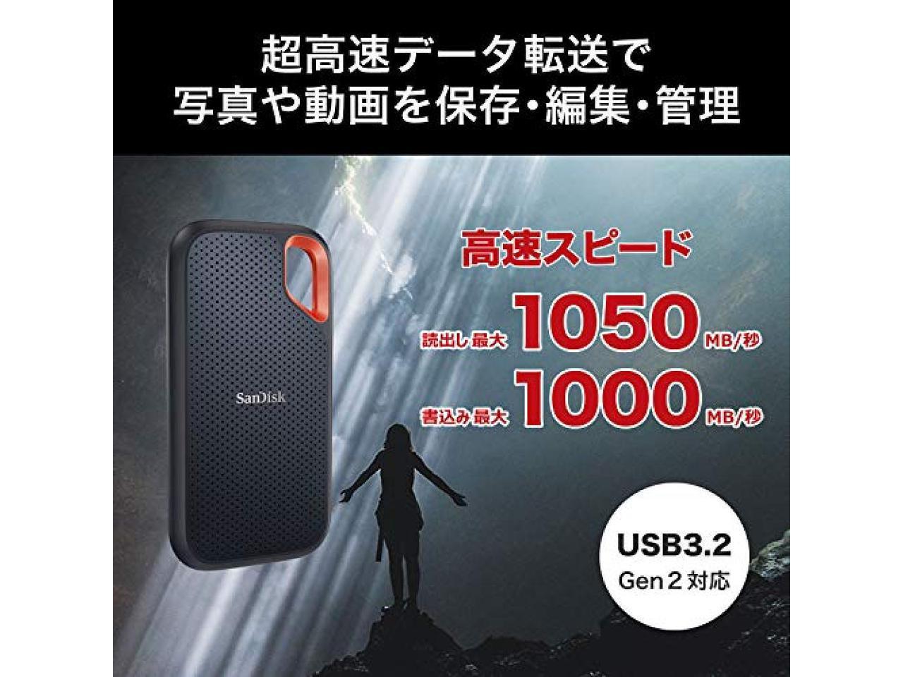 SanDisk SSD External 4TB USB3.2Gen2 Read up to 1050MB / sec Drip-proof and dust-proof SDSSDE61-4T00-GH25 Extreme Portable SSD V2 Win Mac PS4 PS5 Eco Package