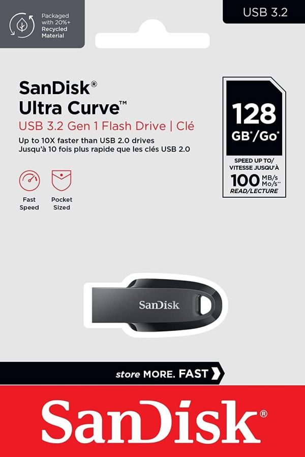 SanDisk Ultra Curve Flash Drive 128GB USB Drive 3.2 Gen 1 USB-A High Speed Thumb Drive for Computers, Laptops, Desktops 100MB/s (SDCZ550-128G-G46) Bundle with (1) Everything But Stromboli Lanyard