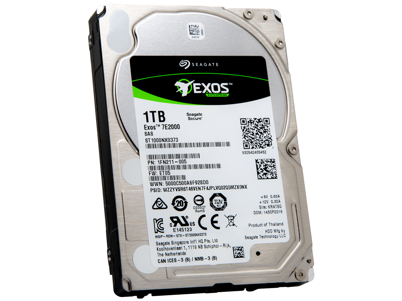 Exos 7E2000 drives optimise your data centre footprint with a compact 2.5-inch form factor, ideal for infrastructures requiring highly reliable access to large volumes of data. Conventional magnetic recording technology helps Exos 7E2000 drives catalyse the data sphere, enabling data centre architects and IT professionals to ensure rock-solid performance, reliability and security in demanding, continuously operating environments. With a mean time between failures of 2 million hours and workloads of up to 550 TB/year, Exos hard drives offer dense data storage and low power consumption to help you achieve the highest levels of performance and reliability.With a mean time between failures of 2 million hours and workloads of up to 550 TB/year, Exos hard drives offer dense data storage and low power consumption to help you achieve the storage levels defined in your SLA while benefiting from a reduced total cost of ownership.