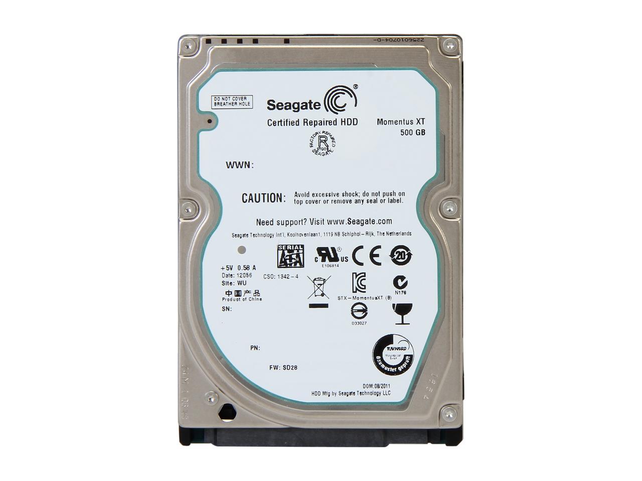 Seagate Momentus XT ST95005620AS 500GB 7200 RPM 32MB Cache SATA 3.0Gb/s 2.5″ Solid State Hybrid Drive -Manufacture Recertified