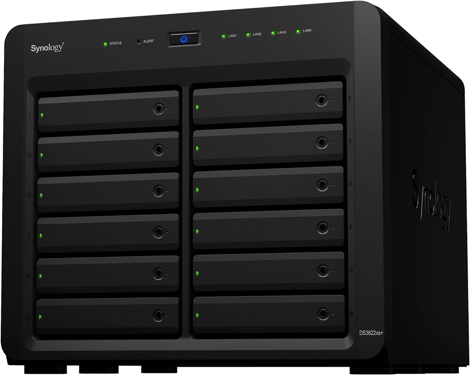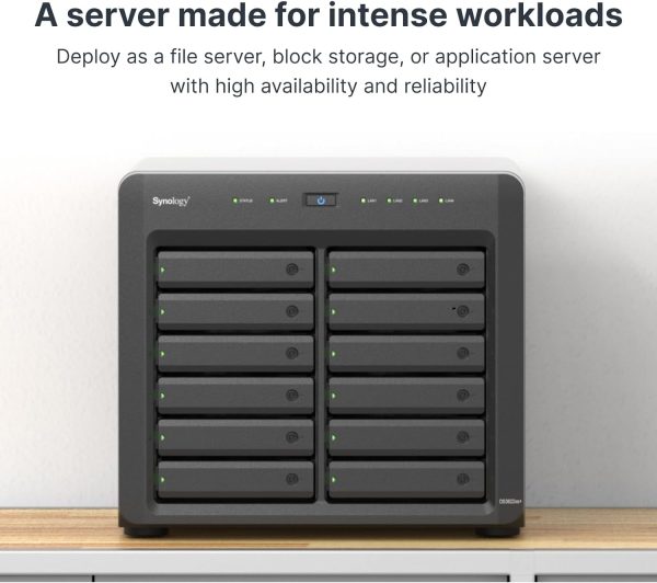 Synology DiskStation DS3622xs+ is a 12-bay tower server NAS for businesses that need large and powerful storage. The DS3622xs+ matches high capacity with strong processing capabilities, making it ideal for business surveillance, virtual machine storage, and video editing. Its storage capacity is easily tripled with two 12-bay DX1222 expansion units. Connectivity, storage, and memory are easily expandable to handle even more demanding workloads. Coupled with a large offering of business applications available for Synology DiskStation Manager (DSM), the DS3622xs+ is much more than a storage device.