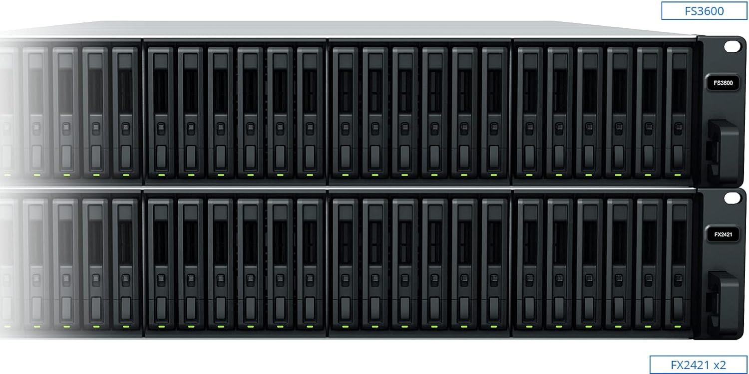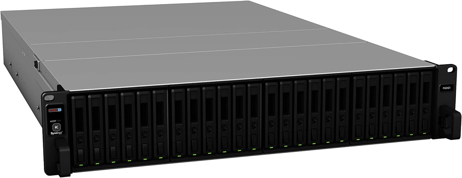 Synology FX2421 expansion units for Synology FlashStation make it easy to upgrade your all-flash storage space with Synology enterprise SSD. Each 2U rackmount unit lets you add 24 additional 2.5?? drive bays on the fly using an expansion cable. Synology FX2421 is the first 24 bay expansion unit to support Synology??s SAT5200 SATA SSD, allowing you to create a highly reliable and integrated storage setup, and receive long-term Synology updates and support.
