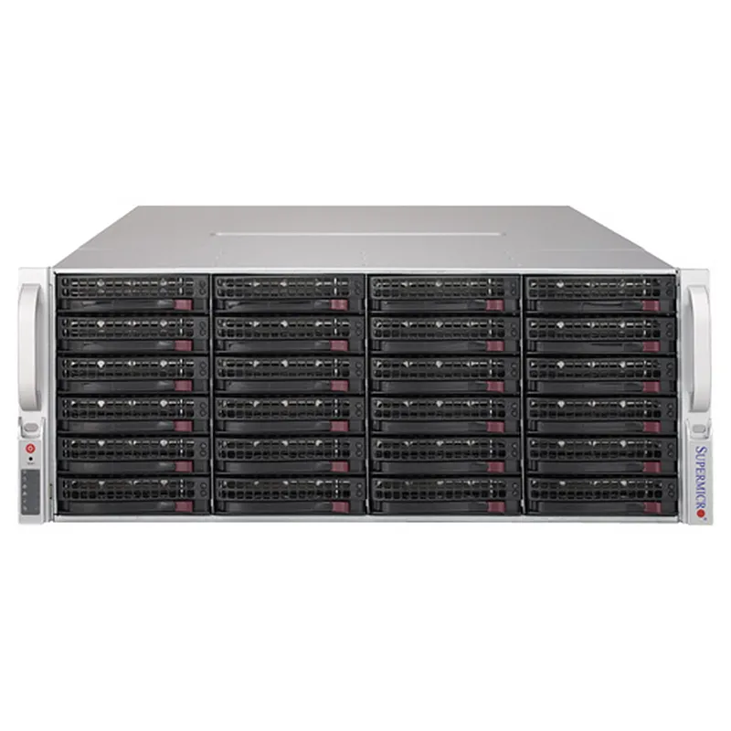 - 36x Hot-swap 3.5″ SAS3/SATA3 drive bays (24 front + 12 rear), Onboard 1x NVMe/SATA M.2; 2x Hot-swap 2.5″ NVMe/SATA (rear, optional); 2x Internal fixed bay support up to 4x 2.5″ drive bays (optional)