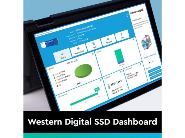 - Work with confidence as the downloadable Western Digital SSD Dashboard helps you monitor your drive’s health, temperature, available space, and more.